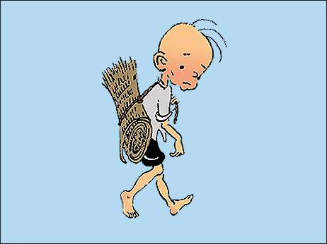 三毛是个穷孩子。他在农村长大,从小就没有了爸爸,也没