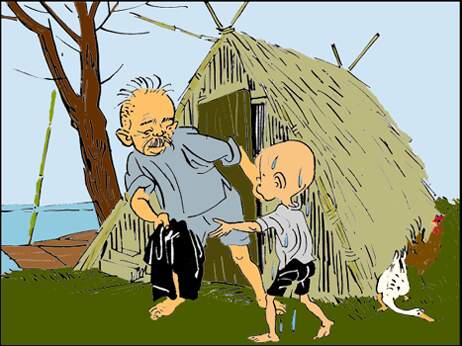 一吹, 他直打冷战。 好心眼的爷爷忙从草棚里拿出自个穿的褂