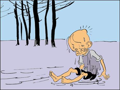 头上的水,擦擦身上的泥,摸摸头上磕的包,含着眼泪接着往前