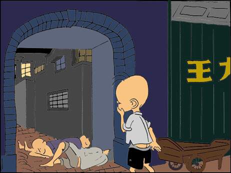 夜呐?三毛从大街转到小胡同。阴暗的胡同两边屋檐底下,早横