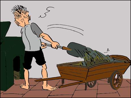 起垃圾来, 一锹一锹地往小车上装。刚铲了两三下,车上的三毛