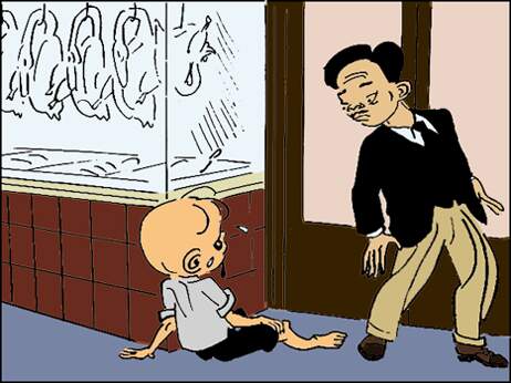 本来就饿得发慌的三毛,只觉得脑袋“嗡”地一声,被摔倒