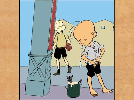 三毛瞅见前边有一个人正在往柱子上刷标语。标语上写着什