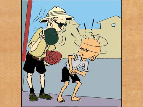贴标语的人回来了,看到三毛捂着肚子直“哎哟”,又看看
