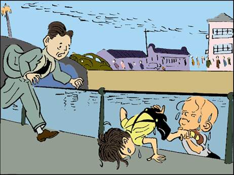 上托起小弟弟,把他推到了桥面。恰好在这时,小弟弟的父亲赶