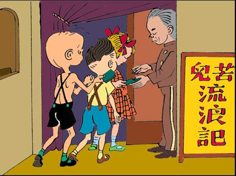 三毛和小弟好不容易找到一个空子, 才从汽车长队里穿过