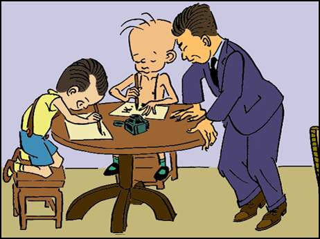 三毛和小弟回到家,小弟的爸爸也下班回来了。他教三毛和
