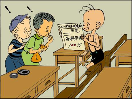 出成绩单, 三毛的成绩单上门门功课都是一百分。 三毛对他们