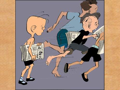 报馆派报的人来了,大家一窝蜂涌上去。 三毛人小个头小,