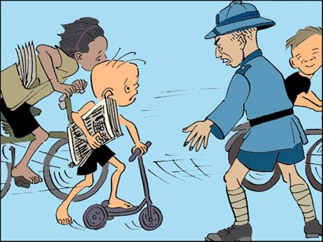 “ 不许乱跑! ”三毛刚跑到一个十字路口,让警察给截住