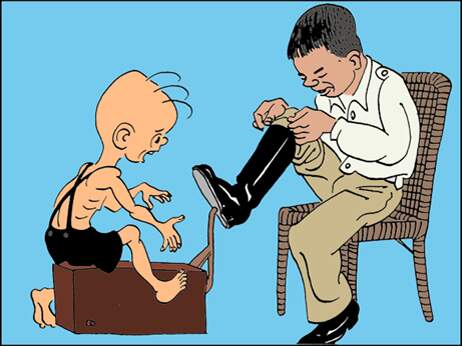 三毛赶紧拿出鞋油、刷子、抹布。那人把裤腿往上一拉,把