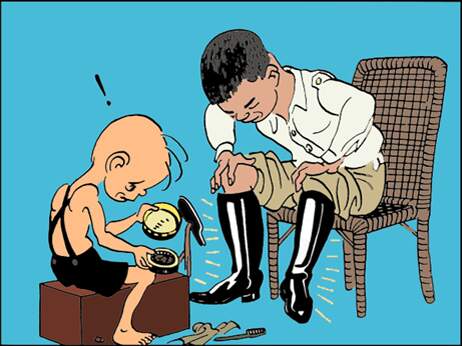 可三毛不能不给人擦啊。这双靴子把三毛的一盒鞋油全使没