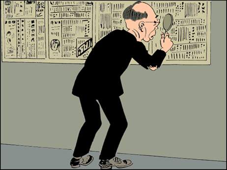 这天晚上,街头走来一位戴眼镜的老先生,借着路灯看报牌