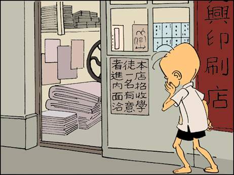 三毛走过一家印刷店, 看见店门口贴了一张纸,上边写着: