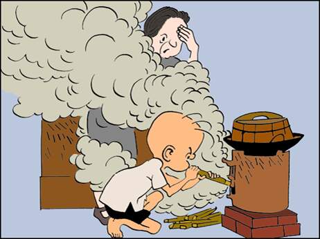 三毛急了,用一根细竹筒吹火。不知怎的,火没吹旺,倒把