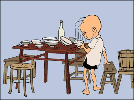 少,等轮到三毛吃的时候,锅里只剩一些饭锅巴,盘里也只有一