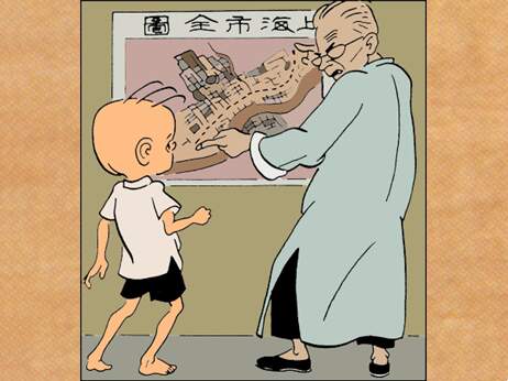 要吃晚饭了,老板却让三毛去送货。 老板指着墙上的地图,