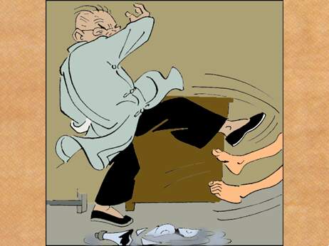 就踢了三毛几脚。三毛被踢倒了,身上、头上都磕破了,老板还