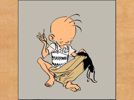 三毛拿着阿牛给的裤子,想了个办法。 他把上半截烂的剪
