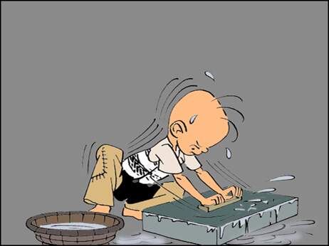 又冷又硬,天冷、水凉,三毛劲又小。他跪在地上磨呀磨,累得