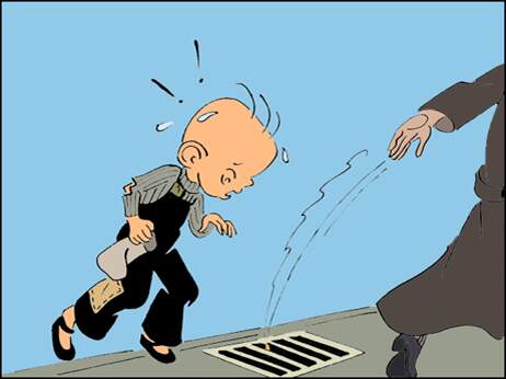 抽完烟,随手一扔烟头,烟头掉进了阴沟铁箅子里了。三毛白白