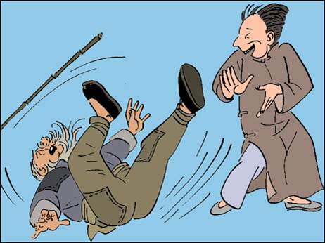 这天,三毛正在街上拣烟头,瞅见一位柱着竹棍儿的老爷爷