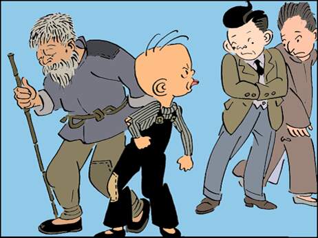 老爷爷。三毛扭过脸生气地瞪着那些瞧热闹的人,一吐舌头,心