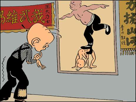 孩的身上,单腿立着一个胖大汉子,光脑袋,仰着头。三毛这才