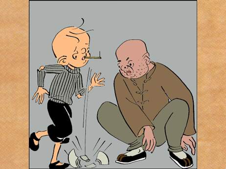 三毛没办法,还得练呀。 可一不小心,碗掉在地上摔碎了,