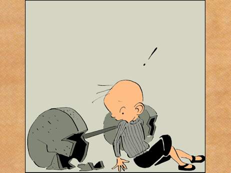 屁股蹲儿。三毛坐在地上扭头一看,咦!石担子摔碎了。原来这