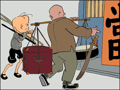 三毛又生气又害怕,不敢吭气。师徒俩收拾好东西,穿好衣