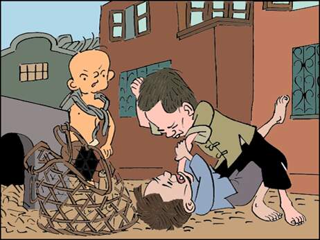 走到弄堂口,就看到两个孩子在打架。一个大个儿的把一个小个