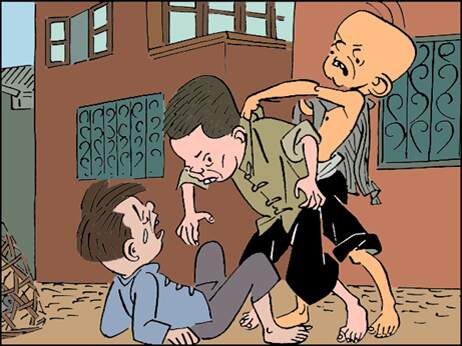 三毛一看是大孩欺负小孩,就生气了。他上去一把揪住了大