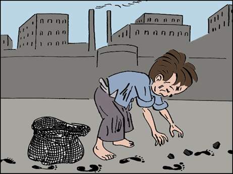 的麻袋破了,煤核从破洞掉出来了,可三毛不知道。阿根跟在后