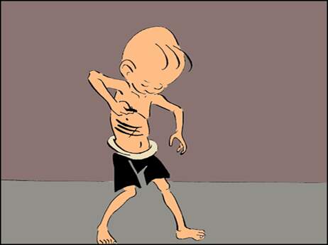 没有了背心,三毛不敢在街上走。哎,那边正停着一辆小推