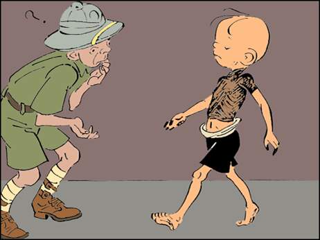 街上巡逻警察瞧着三毛, 还以为他穿了一件黑色的紧身汗