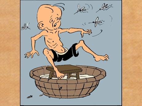 可没想到,他刚要打盹儿,“嗡嗡嗡”,盆里的水又把蚊子