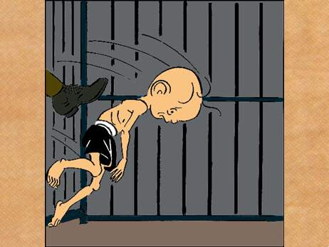 三毛被巡警一脚踢进了一间小牢房,又“唏哩哗啦”锁上了