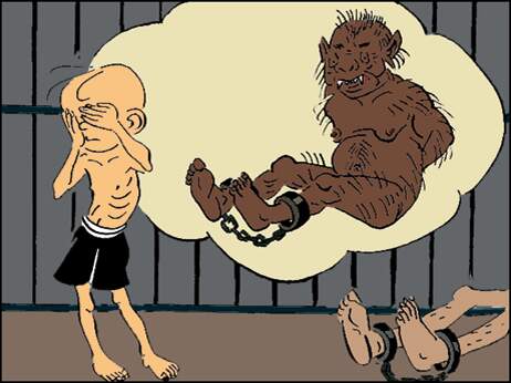 脚,脚上还带着铁镣。三毛看着光脚上的铁镣,还以为躺着的是