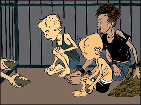 监狱开饭了。监狱里给犯人吃的都是长了虫的、发了霉的、