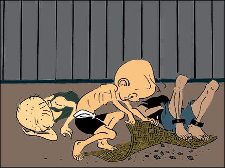 晚上,三毛刚躺下,腿上就起了好些包。三毛只得坐起来,