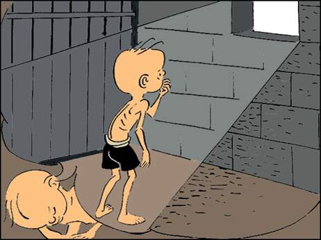 一轮明月的亮光从牢房的小窗户里射进来, 它把三毛照醒