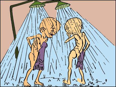 真干净啊!一个个莲蓬似的水龙头,喷出来的水淋到身上舒服极