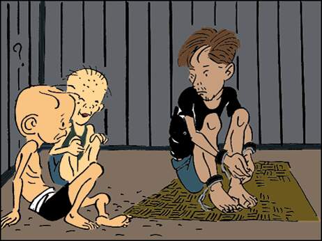 了。他看着满头癞疤的小癞子,戴着手铐脚镣的张叔叔,这才明