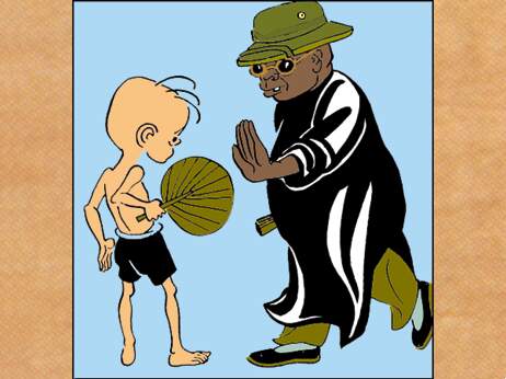 三毛觉得这办法挺好,也去找了把大蒲扇,站在街边看了一