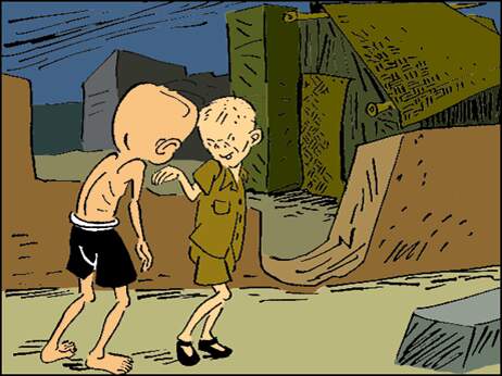 小癞子带着三毛穿大街,走小巷,曲里拐弯,走到一个僻静