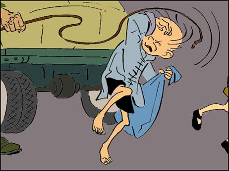 三毛光顾抓棉花,没留意有人走来。看车的人一声不出,抡