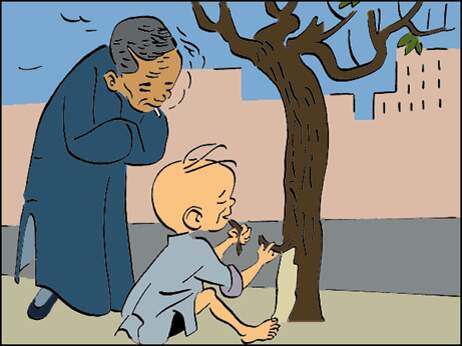 真是饿极了,饿得路都走不动。三毛坐在树根下边,看看裂开的