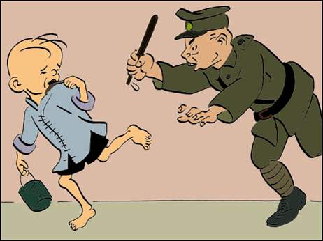 乱?不准吃树皮!”围着的人被吓跑了,三毛也叼着树皮跑了。