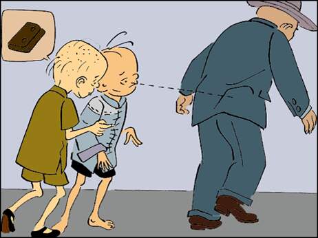 他们来到街上人多的地方 , 发现有个穿制服的人后腰鼓鼓